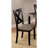 Description - You can never go wrong with a dark and simple dining set in your home. Clean and linear lines create a minimalistic rectangular dining table while emphasized with brushed black finishes. Chairs with padded fabric seats provide the best comfort while an X-shaped backrest design adds flair and dimension. This dining set fits into any home for a simple and clean look!Dimensions -Dining Table - 48"L X 36"W X 30"HSide Chairs - 17 1/2"W X 21"D X 38 3/4"H (SEAT HT: 19 3/4", SEAT DP: 16")Listing Includes - 5pc Dining Set (1x Dining Table And 4x Side Chairs) Only.Features :-TransitionalBrushed BlackFabric, Solid Wood, Wood Veneer, OthersX-Cross Back DesignTapered LegsBrown Fabric Cushion